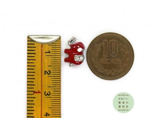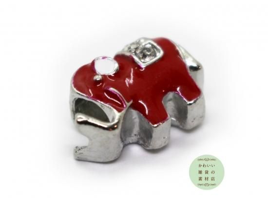 カラフルキュート♪ラインストーンつきのぞうさんのエナメル大穴ビーズ(レッド/チャーム/シルバー)2個セット BC-0012