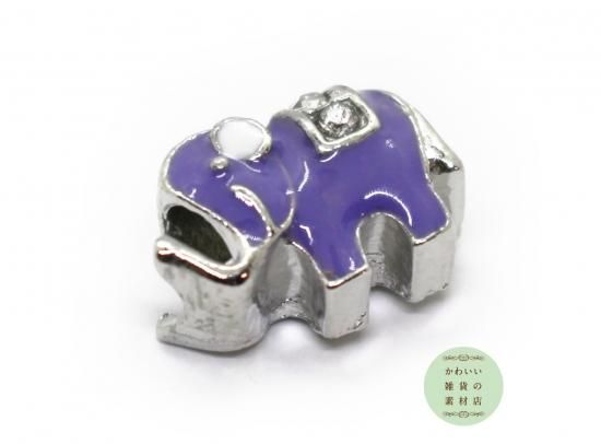 カラフルキュート♪ラインストーンつきのぞうさんのエナメル大穴ビーズ(パープル/チャーム/シルバー) BC-0014