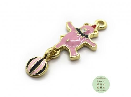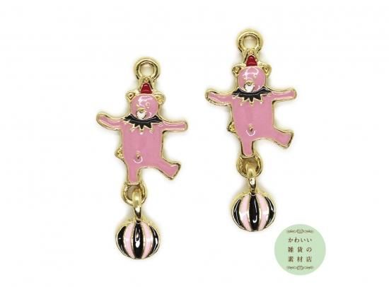 サーカスのボールに乗ったクマのエナメルチャーム(スモーキーピンク)2個セット CE-0081