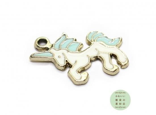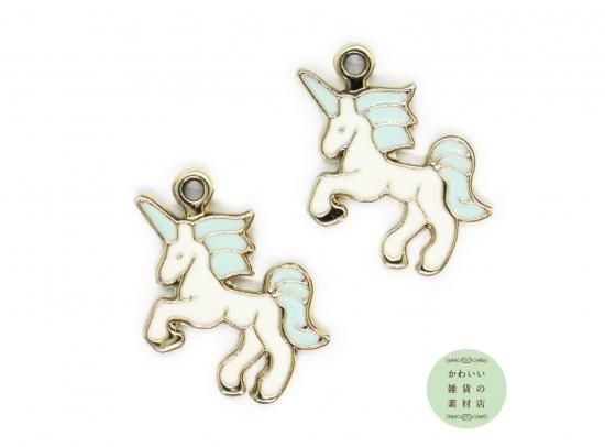 ミントブルーの角とたてがみのファンタジー・ホワイトユニコーンのエナメルチャーム 2個セット CE-0092