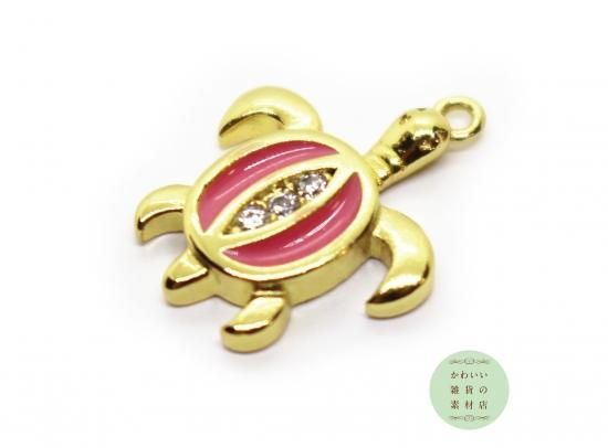 背中に小さなキュービックジルコニアのついたウミガメの真鍮製チャーム(ローズピンク/ゴールド)2個セット CCZ-0011