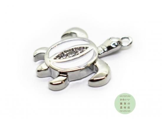 背中に小さなキュービックジルコニアのついたウミガメの真鍮製チャーム(ホワイト/シルバー)2個セット CCZ-0013