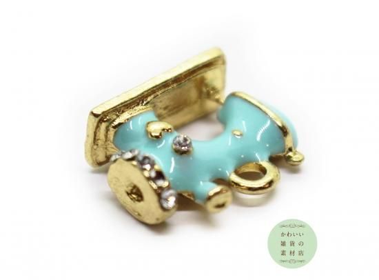 船のハンドル(操舵輪)の中にイカリマークの入ったエナメルチャーム(アイボリー/ゴールド/マリン)2個セット