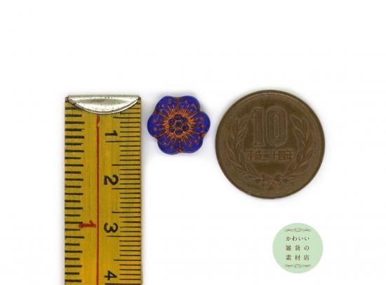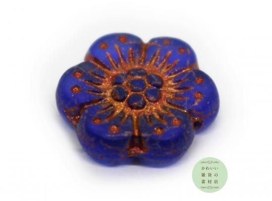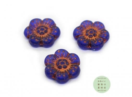 14mm チェコビーズ プレス ワイルドローズ 半透明マットサファイアブルー&ブロンズ(チェコガラスビーズ/フラワー/花)3個セット BCZ-0056
