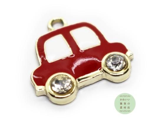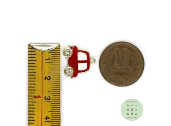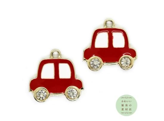 車輪にキラキラ☆クリスタルラインストーンがついた車のエナメルチャーム(レッド/ライトゴールド)2個セット CER-0047