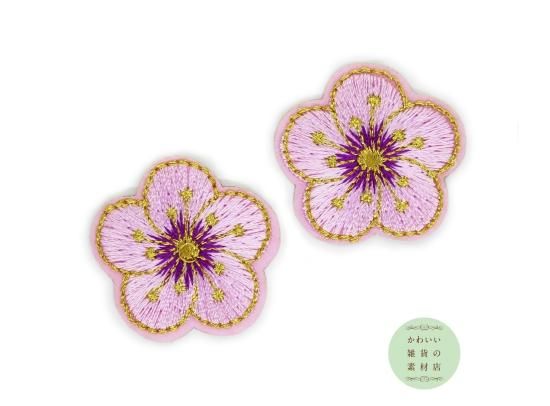 まるこい5弁のキュートな花のシールワッペン(マゼンタ&ライトピンク/アップリケ/刺繍)2枚セット AP-0011