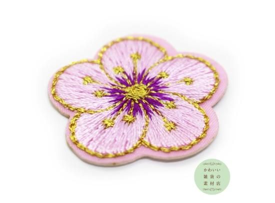 めしべとおしべと縁の部分に金色の糸があしらわれており
