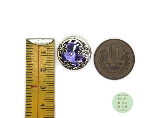 20mm ライトパープルの大きな丸いラインストーンの周りに5弁の小花が3つ並んだアンティークシルバーのスナップボタン(スナップジュエリー用/飾りボタン/ラウンド) BUS-0064