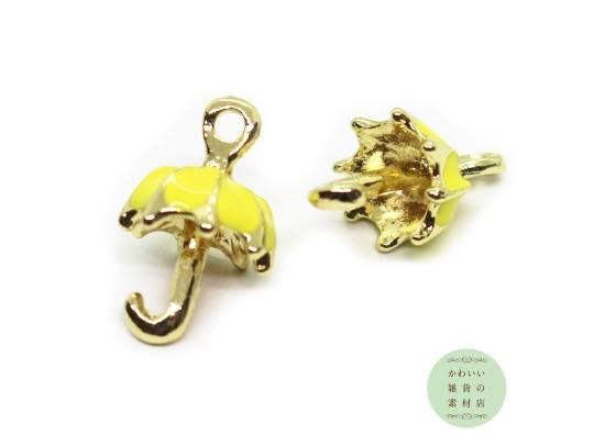 レモンイエローのパラソルの立体エナメルチャーム(傘/かさ/アンブレラ/ゴールド)2個セット CE-0229
