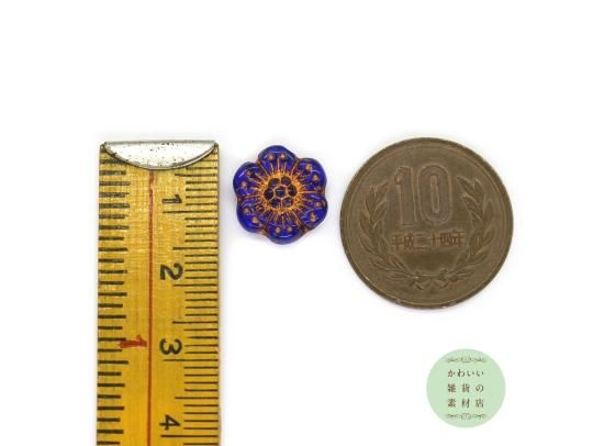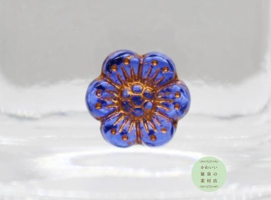 ロイヤルブルーの野バラの素朴なチェコガラスビーズです。