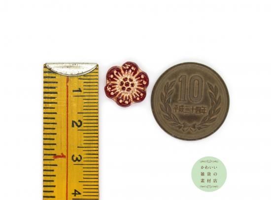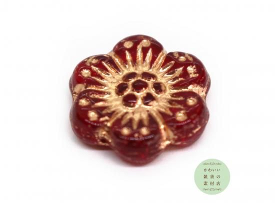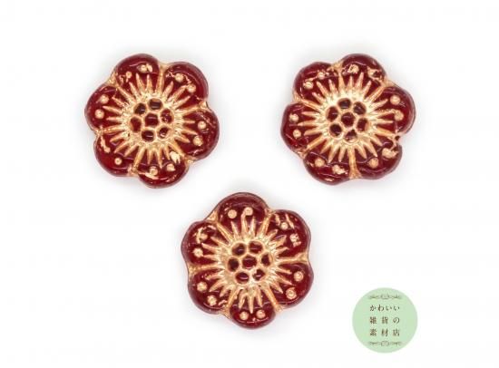 14mm チェコビーズ プレス ワイルドローズ 半透明スカーレット&ブロンズ(チェコガラスビーズ/フラワー/花)3個セット BCZ-0157