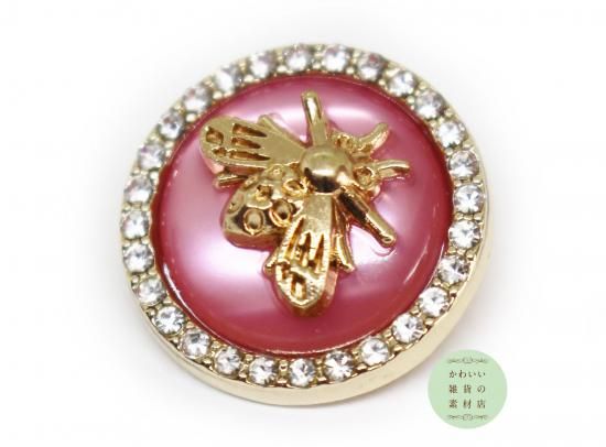 18mm キラキラ☆ラインストーンで囲んだ蜜蜂の丸いビジューボタン(ワインレッド/ゴールド/装飾ボタン/飾りボタン) BUB-0003