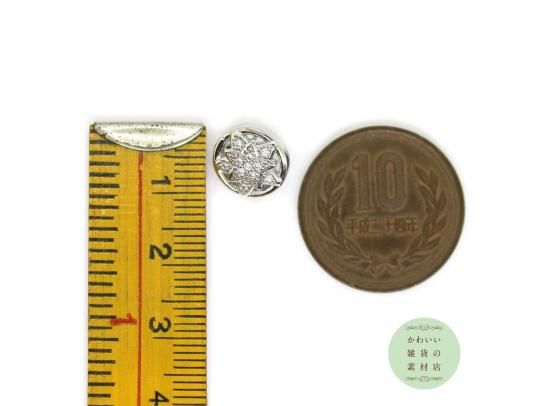 真鍮製の丸い11mm幅のビジューボタンです。