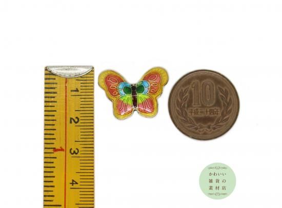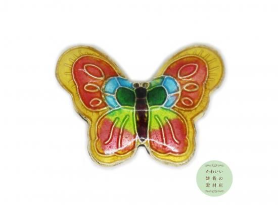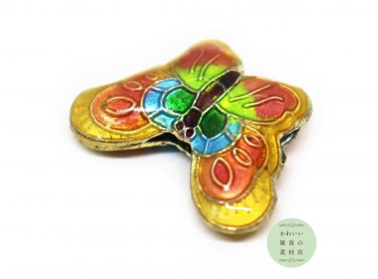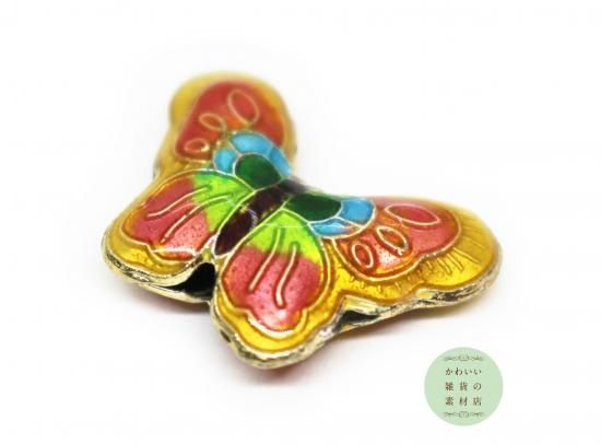 マスタードイエローの縁どりにレッド・ブルー・ライトグリーンが美しい蝶の大きめエナメルビーズ(ゴールド/チャーム) BE-0020