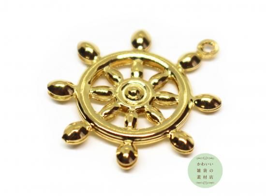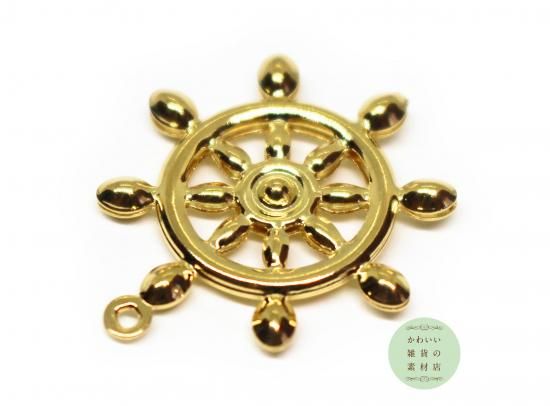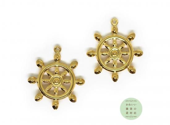 船のハンドル(操舵輪)の中にイカリマークの入ったエナメルチャーム(アイボリー/ゴールド/マリン)2個セット